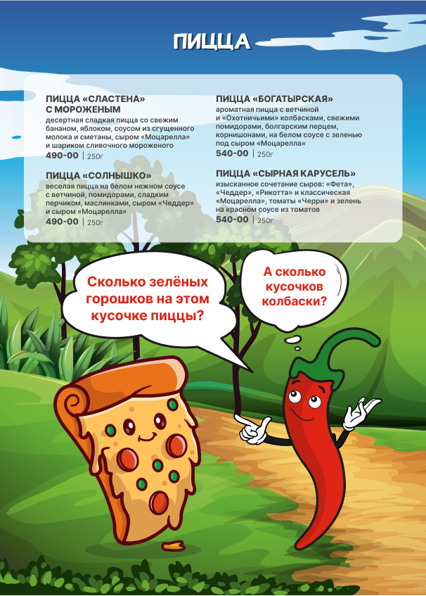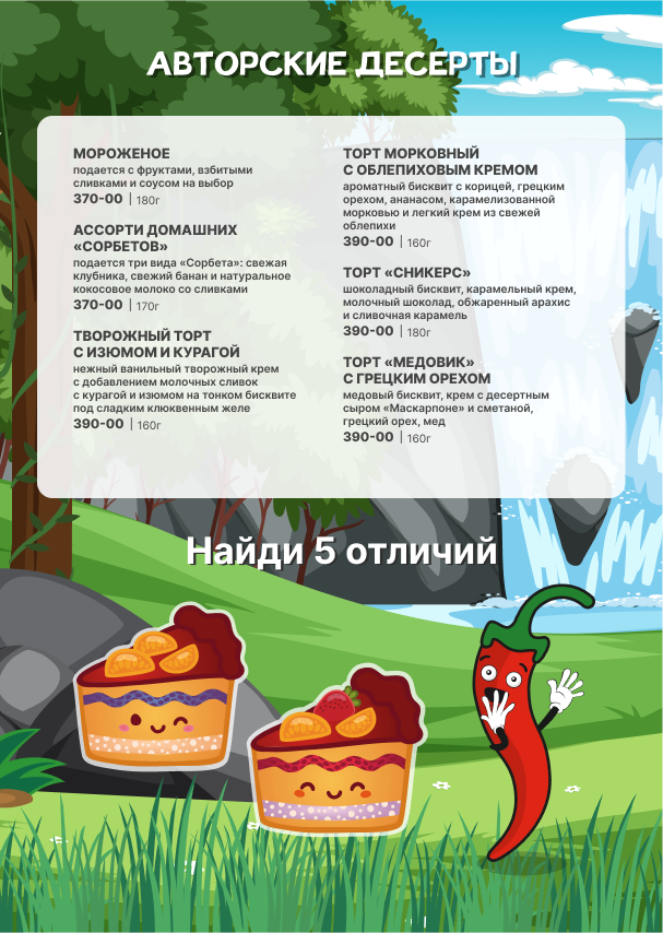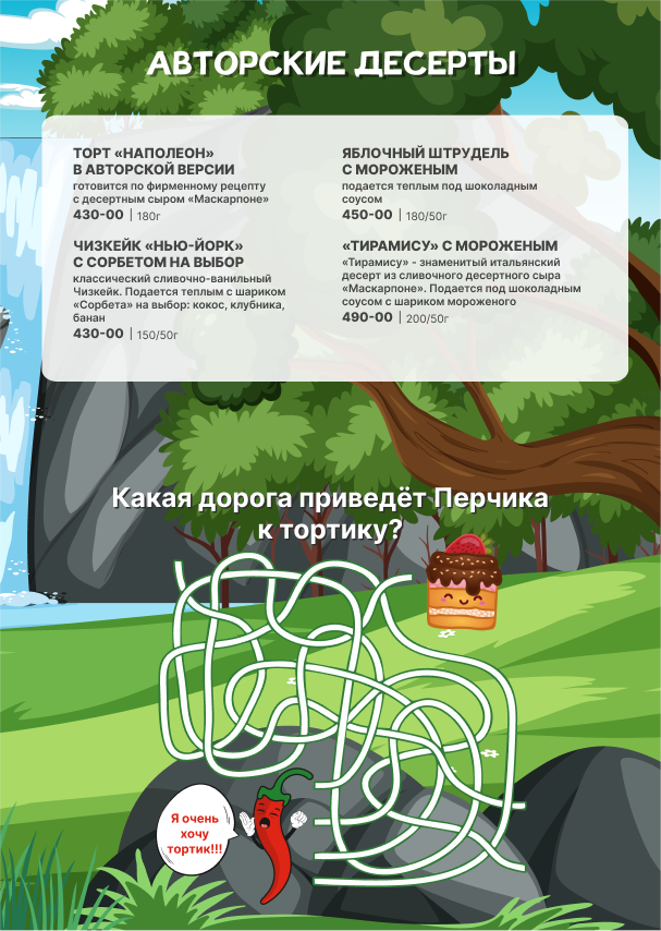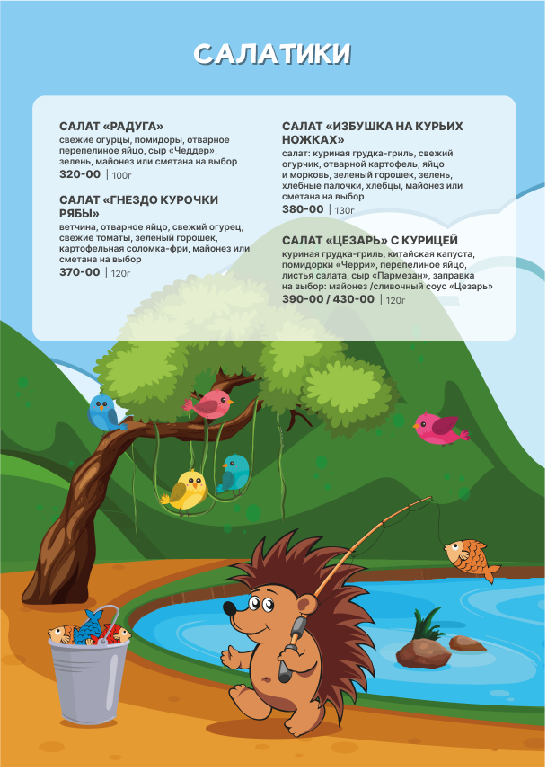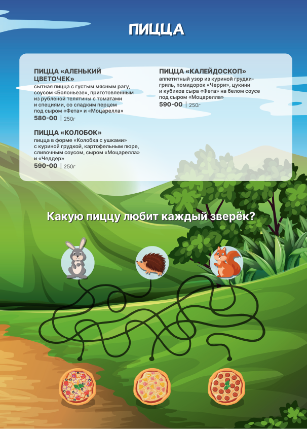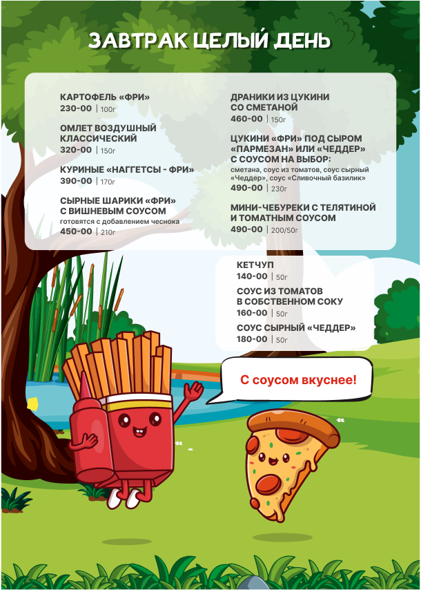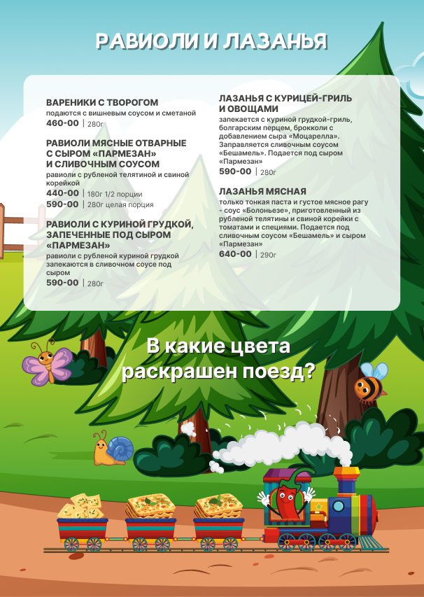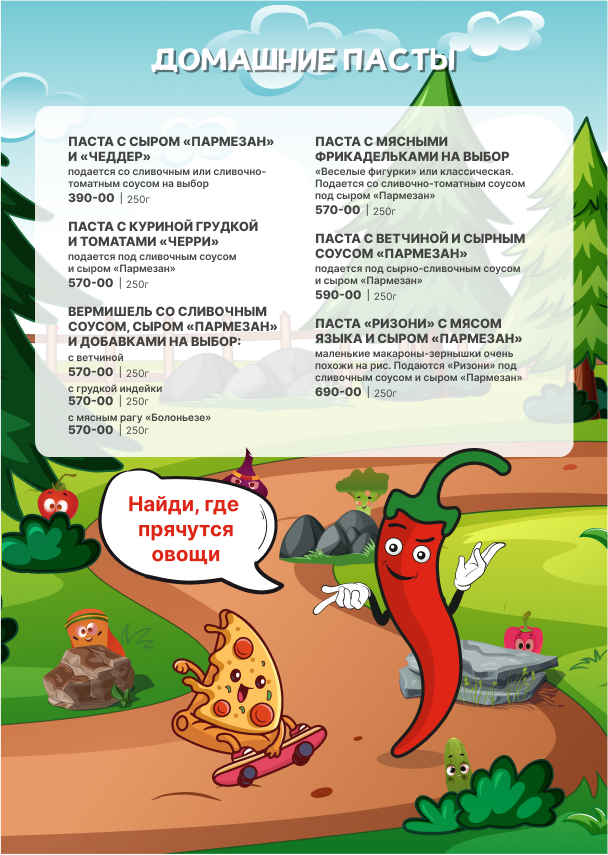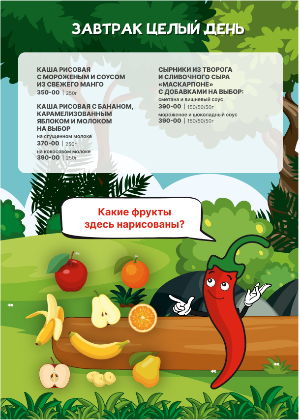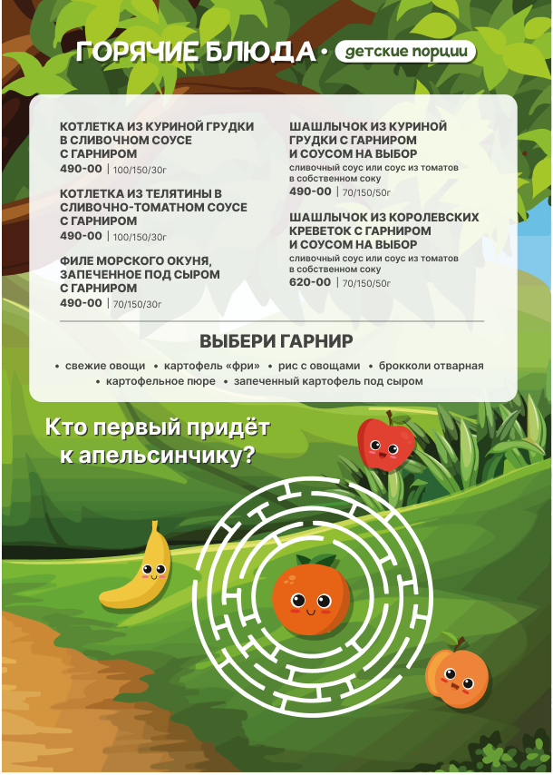Для детей детское меню, детские стульчики.