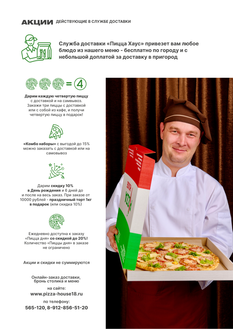 • Постоянная акция! Четвертая пицца в подарок с доставкой и на самовывоз!