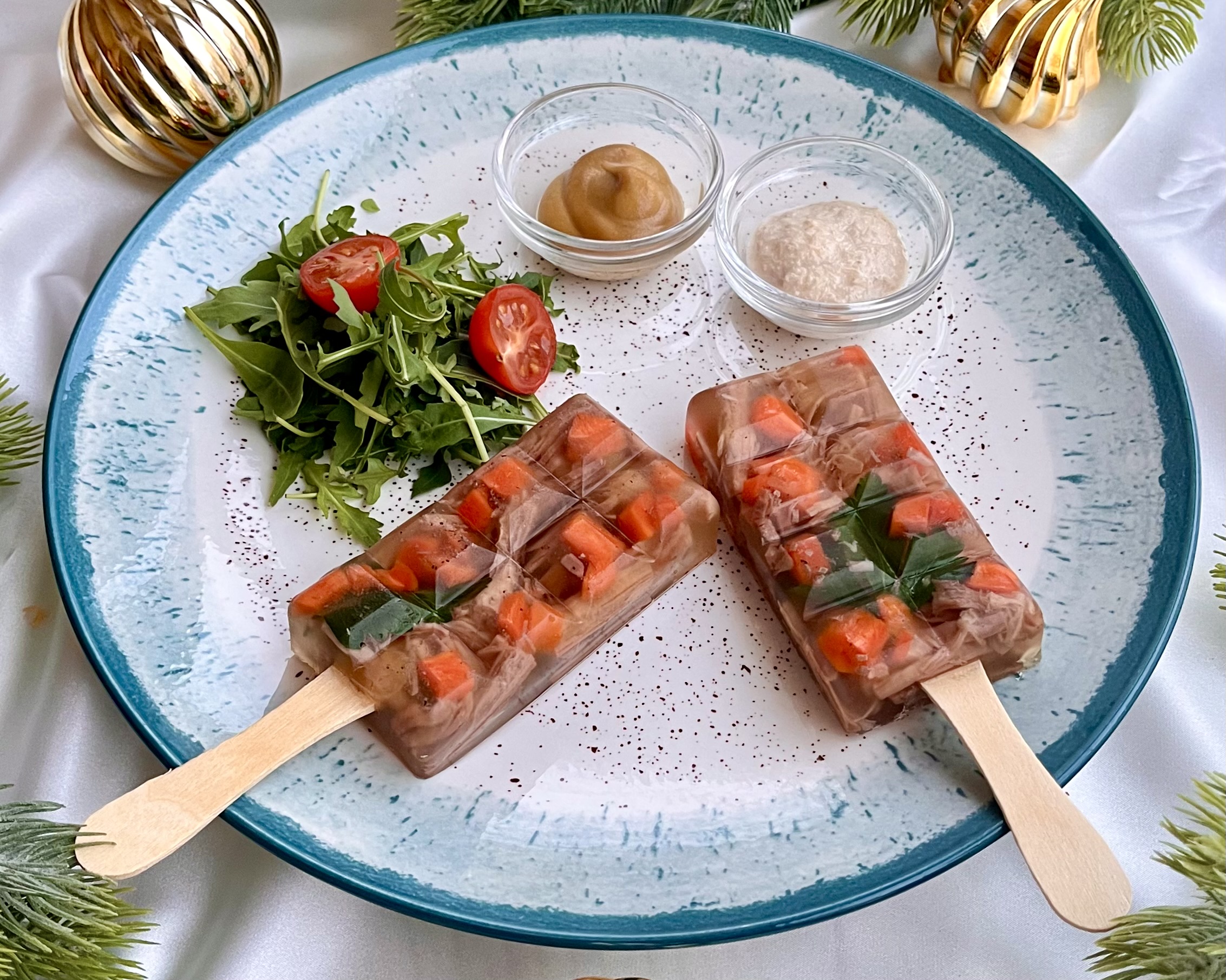 Подается с горчицей, соусом-хрен, рукколой и томатами Черри